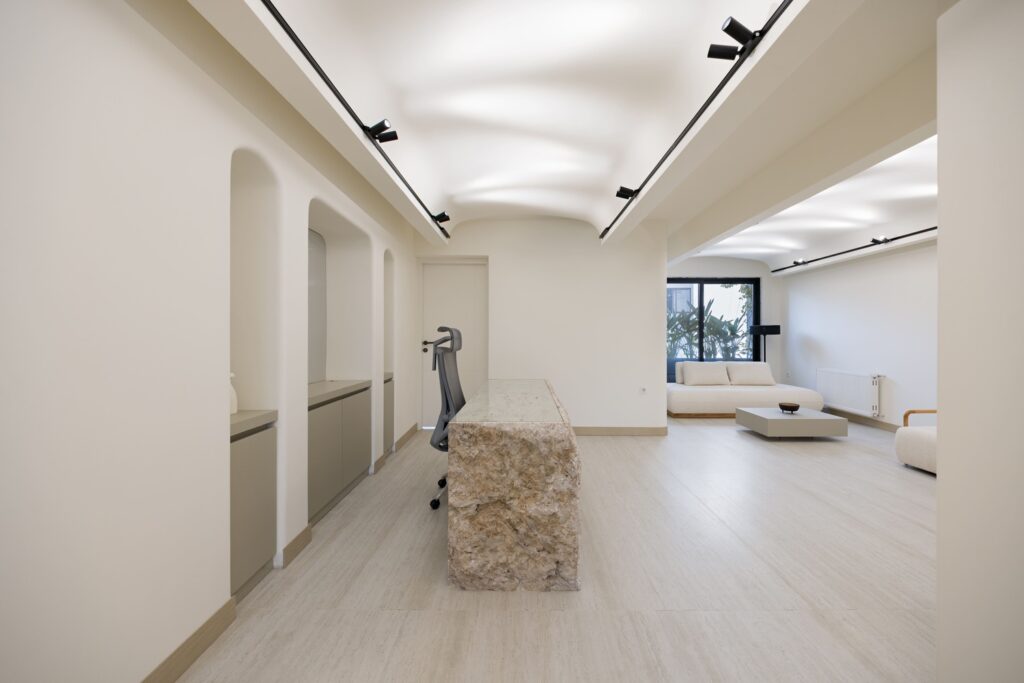 Também o mobiliário e os acabamentos seguem a mesma lógica: linhas simples, formas descomplicadas, ausência de ornamentação excessiva. Nada compete com a função principal do espaço, que é apoiar a escuta, o diálogo e o processo de cura psicológica. A ergonomia dos lugares de espera e das salas de consulta foi estudada para proporcionar conforto sem distracções, transmitindo segurança e estabilidade a quem procura ajuda.