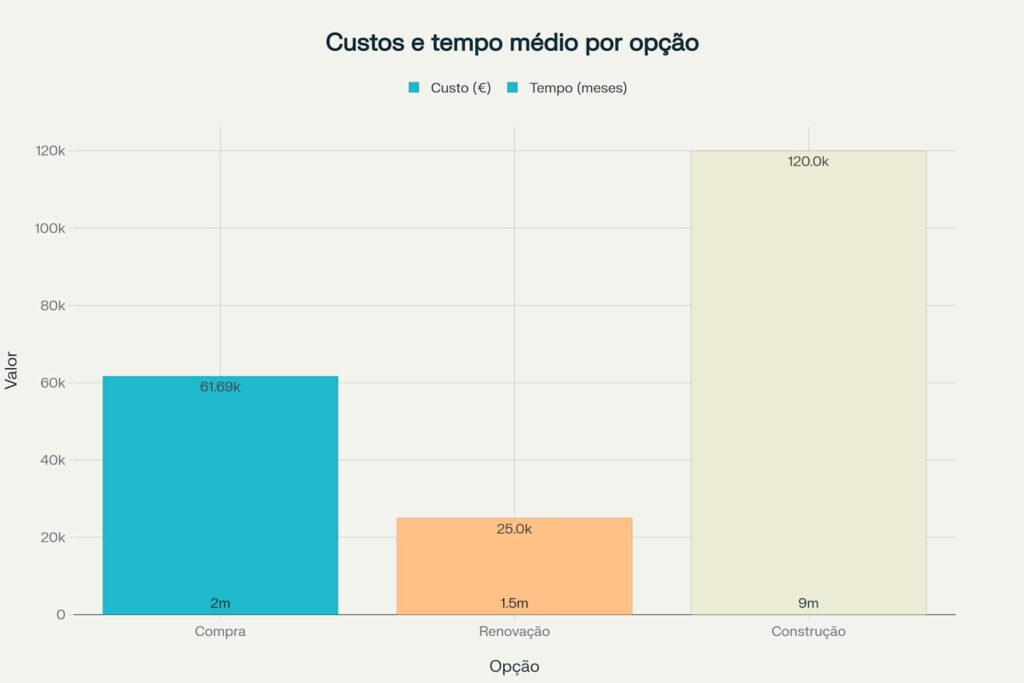 - Construção: O preço médio por metro quadrado em 2025 está entre 1.000€ e 1.800€, com o projeto completo levando de 6 meses a 1 ano, considerando todas as etapas desde planejamento até acabamento.