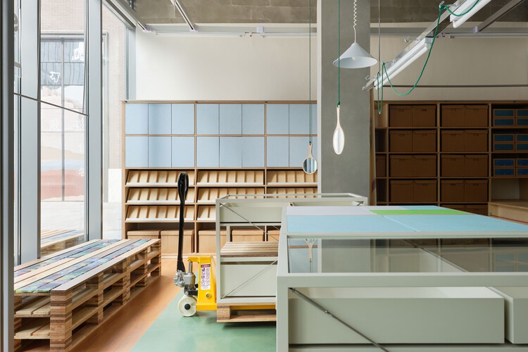 O estúdio amass, responsável pelo projecto em Chengdu, partiu desta premissa para criar uma loja que funciona como montra e bastidor ao mesmo tempo. Em vez de esconder o lado “industrial” da marca, o design assume-o: estruturas expostas, soluções de arrumação aparentes e percursos bem definidos evocam um pequeno centro de produção em miniatura. O resultado é uma linguagem visual coerente, que aproxima o cliente do processo de fabrico e reforça a autenticidade da marca.